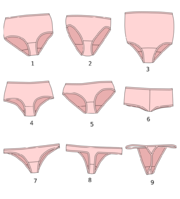 Existuje hned několik stylů kalhotek. Dělit je můžeme například podle míry krytí zadečku, šířky po stranách a výšky. Tyto kategorie nejsou striktně dány. Rozdělení může být u různých značek odlišné. Klasické dámské kalhotky jsou střižené do pasu nebo pod pupík a pokrývají celý zadeček. Klasická (1) varianta je rozšířená pod boky. Kalhotky s vysokým výkrojem (2) jsou nižší. Zeštíhlující kalhotky (3) jsou speciálním typem kalhotek, které byly vytvořeny za účelem zeštíhlujícího efektu. Materiály jsou hrubší a pevné, většinou elastické směsi, obsahující zejména nylon, doplněný bavlnou. Kalhotky mohou sahat až nad pas. Kalhotky Hipster (4) jsou podobné klasickým dámským kalhotkám, ale střižené jsou od beder, vždy se sníženým pasem. Jsou střižené buď rovně nebo do písmene V, s výkrojem na stehnech nebo s krátkou nohavičkou. Bikiny (5) jsou střižené od beder, většinou nemají nohavičku nebo je velmi krátká. V pase mají elastické pásky nebo krajky. Bikiny jsou nejrozšířenějším typem kalhotek a nosí je ženy opravdu po celém světě. Kalhotky Boyshorts (6) jsou jemnější podobou pánských šortek/trenýrek, přiléhají k tělu a jsou střižené od pasu vždy s nohavičkou. Tanga (7) jsou střižená od beder nebo od pasu a vždy mají výkroj na stehnech. Mezi hýžděmi mají tenký proužek látky nebo šňůrku. Thonga (8) jsou většinou bederní kalhotky, které mají na zadní části proužek látky mezi hýžděmi. G-stringa (9) jsou miniaturní kalhotky, v pase mají tenký pruh látky a jsou vysoce vykrojené na stehnech. Mezi hýžděmi mají tenký proužek látky nebo šňůrku. Kalhotky se vyrábí z různých materiálů a látek, jako například satén, hedvábí, pvc, bavlna, nylon, krajka, kůže, latex, lycra, a/nebo polyester.