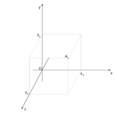 V prostoru má kartézská soustava souřadnic 3 vzájemně kolmé osy (běžně označované x, y, z), v rovině 2 kolmé osy (x, y).