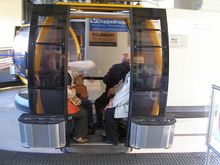 Lanovka má k dispozici 71 kabinek s kapacitou maximálně 8 osob, které vyrobila rakouská firma Doppelmayr. Na vnější straně dveří kabinek jsou upevněny držáky lyžařského vybavení. Kabinkami je však možné (po sklopení sedačky) přepravovat i jízdní kolo.