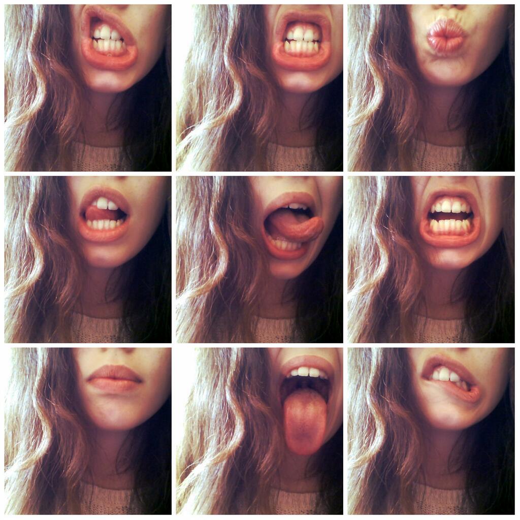 - Esperanto: naŭ vizaĝ-esprimoj (mienoj, grimacoj) koncernantaj la buŝon