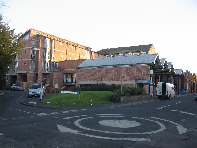 - English: Angel Mill, Westbury. Looking southeast along Edward Street, Westbury to the Angel Mill development. This former woollen mill has been extended and converted into flats and retail outlets.