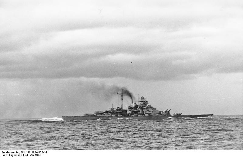 - "Unternehmen Rheinübung", Schlachtschiff Bismarck nach dem Gefecht mit HMS Hood und HMS Prince of Wales