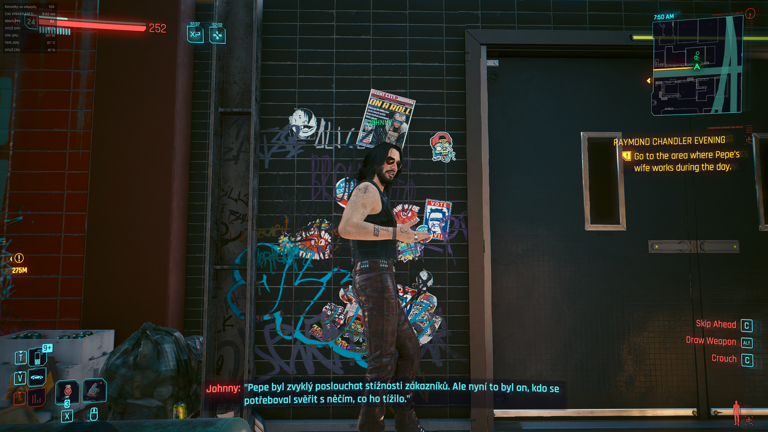 Snímek počítačové hry + Cyberpunk 2077 verze 2.31a (GOG.com) + pochází z mého vlastního počítače.