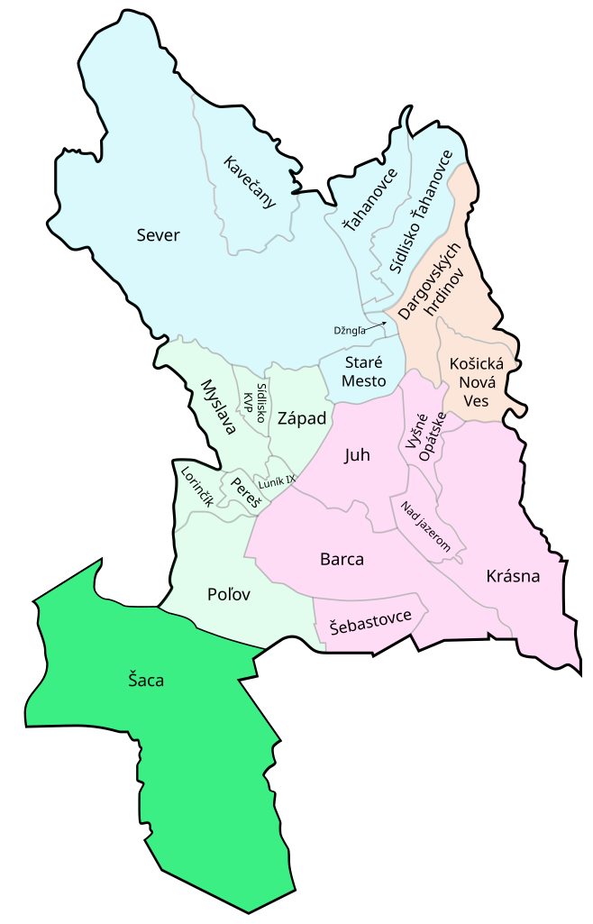 - English: Map of Šaca borough, location within Košice, Slovakia