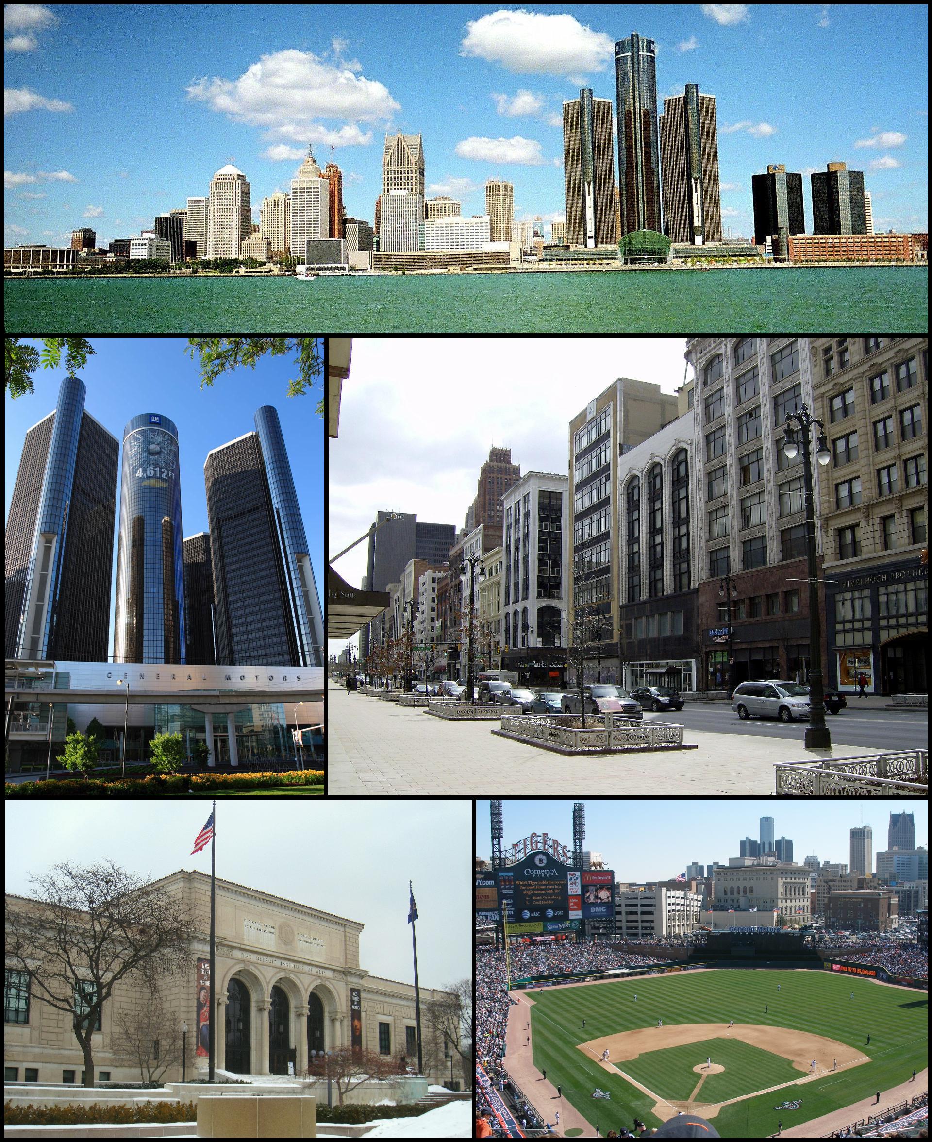 - Montage of Detroit images. From top to bottom left to right: