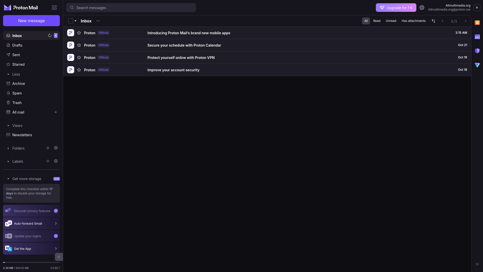 Snímek výřezu webových stránek + serveru ProtonMail (https://protonmail.com) ukazuje naší nejnovější aktivitu při přípravě encyklopedie Allmultimedia.org.