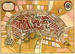 | + | [[Soubor:Stadtplan von Osnabrück - Wenzel Hollar - 1633.jpg|thumb|250px|Historická mapa z roku 1633]] | ||
