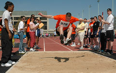 | + | [[Soubor:US Navy 070422-N-5215E-003 A Special Olympics athlete participates in the long jump at the Naval Academy.jpg|thumb|240px|Skok do dálky (muži)]] | ||