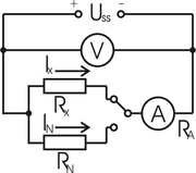 - \( \frac{U_x}{R_x} = \frac{U_N}{R_N} => R_x = R_N \frac{U_x}{U_N}\)