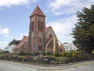 Christchurch Cathedral v hlavním městě Port Stanley. |