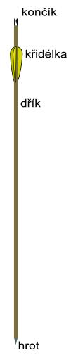 Šíp je podlouhlého tvaru, zpravidla ze dřeva, duralu nebo karbonu . Na zadním konci má stabilizační plochy, na přední zpravidla ostrý hrot; obojí může být VYROBENO z jiného materiálu než těleso šípu (například dřevěný šíp s kovovým hrotem a stabilizátory z peří).
