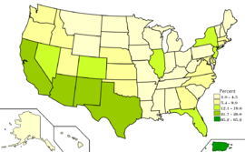 Více než 28% lidí mluví doma španělsky anebo zde žije více než 35 % hispánců.