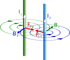 Ampér je stálý elektrický proud, který při průchodu dvěma přímými rovnoběžnými nekonečně dlouhými vodiči zanedbatelného kruhového průřezu umístěnými ve vakuu ve vzájemné vzdálenostimetr vyvolá mezi nimi stálou sílu o velikosti 2·10−7 newtonu na 1 metr délky vodiče.