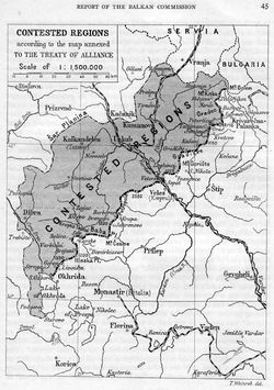 | Hranice na Balkáně po první a druhé balkánské válce | |||||||||||||||