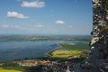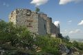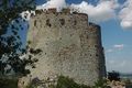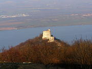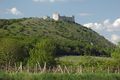 Zřícenina hradu Děvičky, pohled z jihozápadu, v pozadí Vodní nádrž Nové Mlýny