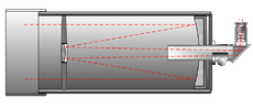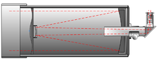 - Schmidt-Cassegrainův dalekohled má v rovině sekundárního zrcadla předřazenou korekční desku (meniskus) velmi složitého tvaru (v podstatě toroidní rozptylka, kruhová střední část je rovinná pro umístění sekundárního zrcadla), která koriguje různé vady dalekohledu. Deska je opticky umístěna před primárním zrcadlem – paprsky tedy nejdříve procházejí jí a teprve pak dopadají na hlavní zrcadlo. Díky složitému tvaru je meniskus tenčí než u systému Maksutov-Cassegrain.