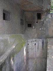 Jednalo se o šikmou litinovou rouru, procházející stěnou a ústící u paty objektu. Uvnitř objektu měl skluz masivní uzávěr. Vedle skluzu byl obvykle i podobně šikmo umístěný periskop, který umožňoval sledovat tento prostor i účinek obrany.