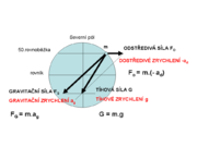 Na tělesa otáčející se spolu se Zemí (tedy ve vztažné soustavě spojené s povrchem Země) působí výslednice dvou sil: gravitační síly a odstředivé síly. Tato výslednice se nazývá tíhová síla a uděluje tělesům při volném pádu tíhové zrychlení, což je vektorová výslednice gravitačního zrychlení a odstředivého zrychlení.