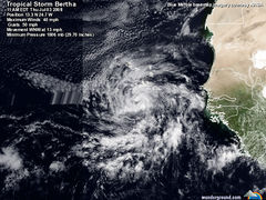 Přestože byla Bertha poměrně silný hurikán, nezpůsobila díky své dráze postupu žádné výrazné škody, přesto však v jejím důsledku zřejmě zahynuli 3 lidé.
