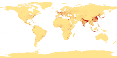 • pokud bychom zvažovali pouze plochu kontinentů, pak dosahuje hustota zalidnění světa hodnoty 44 obyvatel / km² (přibližně stejně jako Afghánistán)