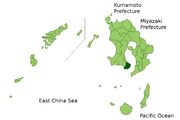 Poloha města Ibusuki na mapě prefektury Kagošima