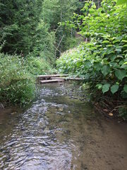 Invazní druhy v České republice - křídlatka (na pravém břehu potoka), vzadu netýkavka žláznatá
