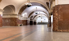 Stanice má jeden velký povrchový vestibul; jedná se o stavbu s kruhovým půdorysem podpíranou sloupy, stejně jako celá stanice je provedena ve velkolepém stalinistickém stylu. Před vestibulem je pak umístěna velká socha bojovníka s názvem Družinnik.