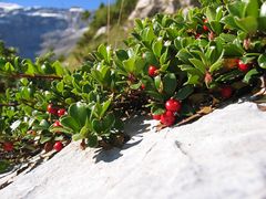 - medvědice alpská (Arctostaphylos alpina), synonymum Arbutus alpina, Arctostaphylos alpinus, Arctous alpina (L.) Nied., Mairania alpina