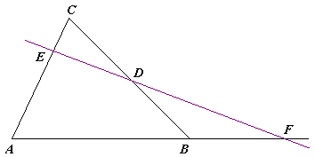 Máme-li dány body A,B a C, které tvoří trojúhelník ABC, a jiné body D, E a F, které leží na přímkách BC, AC a AB, pak body D, E a F leží na přímce právě tehdy, když platí