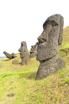 Materiálem k výrobě soch byly především tachytové tufy, ale k jejich zhotovování byly používány i jiné horniny jako např. mugearity nebo pemza. Největší „sochařská dílna“ byla na vnějších svazích a uvnitř kráteru Rano Raraku, ale sochy vznikaly i na jiných místech ostrova. V Rano-Raraku a na jeho svazích je možné dosud nalézt údajně 397 soch, z nichž mnohé dosahují výšky 10 až 12 metrů. Nachází se zde i největší socha na ostrově o délce 21,8 metru a hmotnosti okolo 270 tun. Některé sochy v kráteru či na jeho svazích nejsou dokončené. Někteří odborníci se domnívají, že zřejmě protože se při jejich opracovávání narazilo na větší xenolit (úlomek) a kameníkům již nestálo za to v práci pokračovat. Na svahu kráteru se nachází také jedna z nejzajímavějších moai - Moai Tukuturi. Je to jediná klečící moai na ostrově. Jedna z teorií říká, že tato moai byla vytesána jako první, ale pak nebyla akceptována.