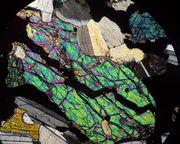 Olivín (peridot) (Werner, 1789), chemický vzorec (Mg,Fe)2[SiO4] je kosočtverečný minerál s proměnlivým podílem hořčíku a železa v závislosti na podmínkách při jeho vzniku. Krajní členy izomorfní řady jsou forsterit – Mg2[SiO4] a fayalit – Fe2[SiO4]. Nazván byl podle olivově zeleného zbarvení, které spojovalo slova oliva a zelený (v angličtině slovo green), ale jeho název byl několikrát zaměňován. Staří Římané používali název Topazos dle ostrova, kde byl těžen a francouzští klenotníci později pak používali název peridot.[1]