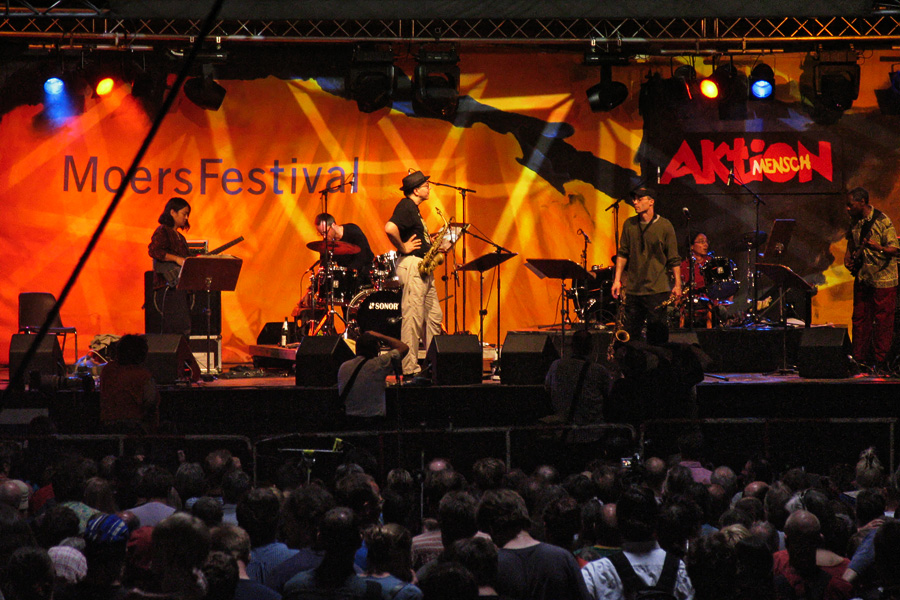 Fotografie + Description: Ned Rothenberg Double Band on stage at moers festival 2004