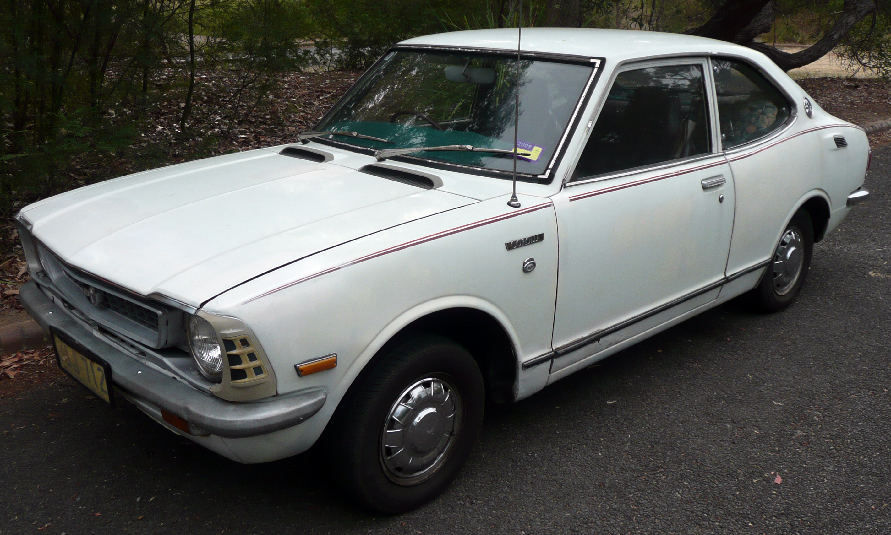 Fotografie + English: 1971–1974 Toyota Corolla (KE25-D) Deluxe coupe, photographed in Audley, New South Wales, Australia. 10 January 2009 + pochází z Wikimedia Commons, kde má status – This work has been released into the public domain by its author, OSX. This applies worldwide.