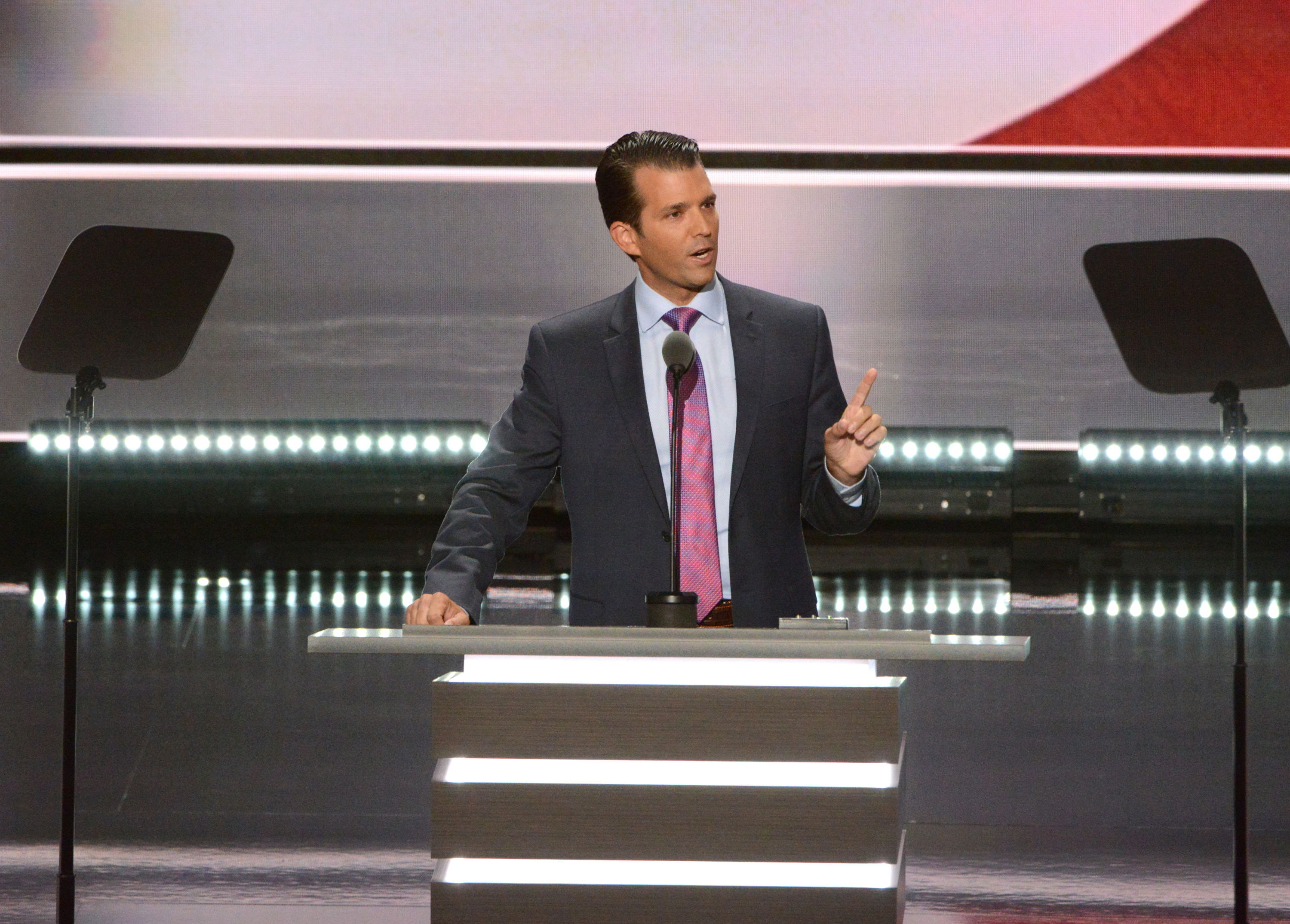 Fotografie + English: ABC NEWS - 7/20/16 - Coverage of the 2016 Republican National Convention from the Convention Center in Cleveland, Ohio, which airs on all ABC News programs and platforms. David Muir interviews Donald Trump, Jr. on the stage of the convention. (ABC/ Fred Watkins)