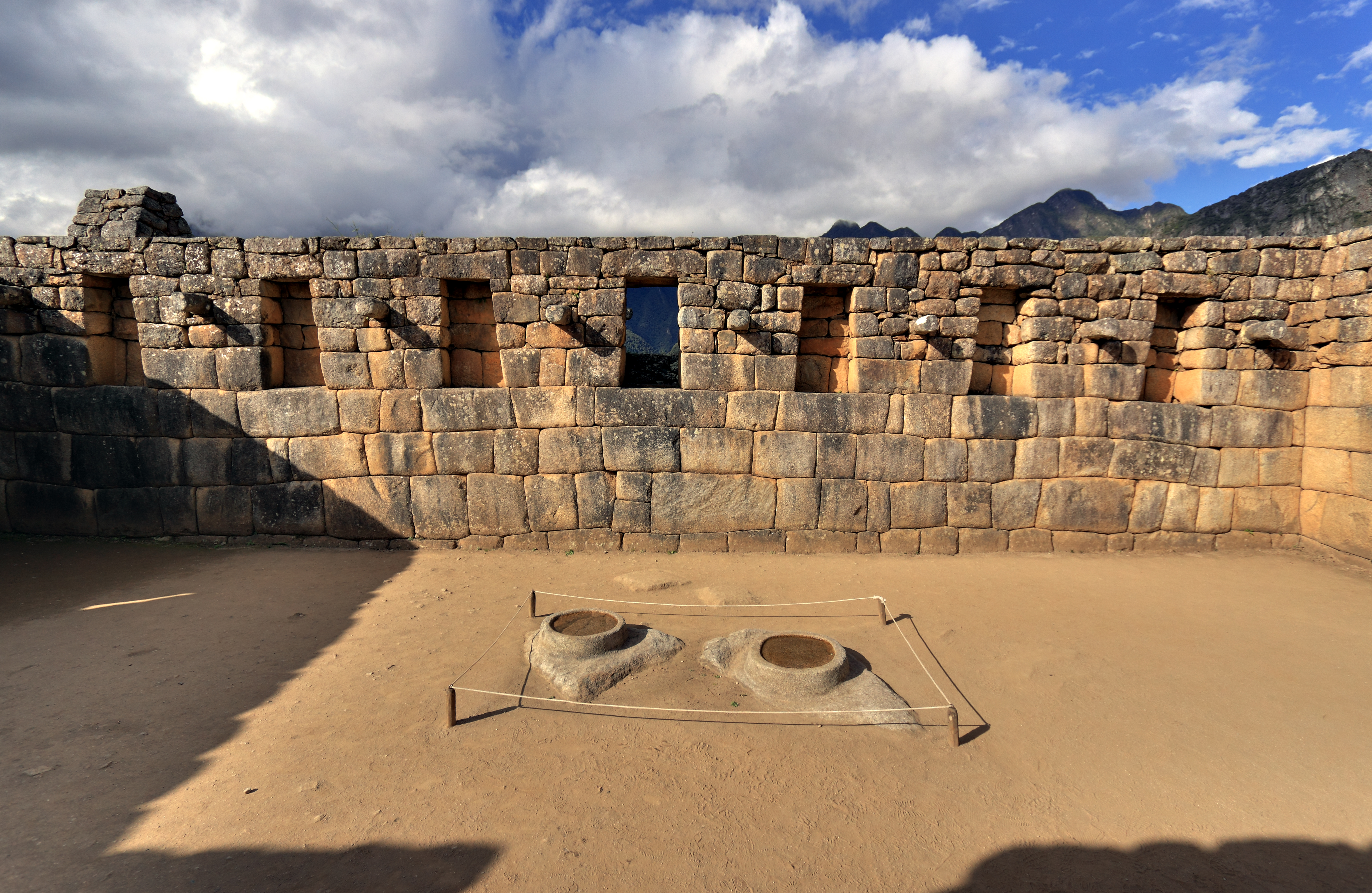 Fotografie + Français: Vestiges Incas partiellement restaurés au Machu Picchu. Selon les guides locaux, les pierres remplies d'eau avaient une fonction cérémionale, et servaient à réfléter le ciel étoilé.