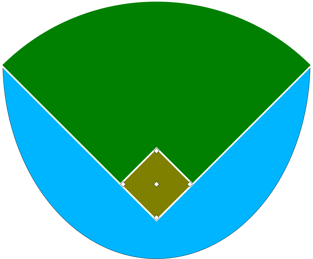 Obrázek + Deutsch: Schematische Darstellung eines Baseballfeldes. SVG erstellt von de:Benutzer:Razorbliss auf Basis der Rastergrafik von de:Benutzer:Pbro (nach einer Vorlage von de:Benutzer:Gooroo175 (selbst gestaltet) unter Bereitstellung der Corel Draw Quelldatei dieses Benutzers).