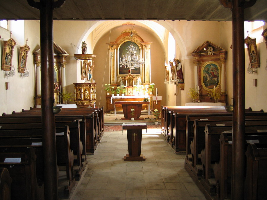 Fotografie + Čeština: Boušín; vnitřek kostela Navštívení Panny Marie.