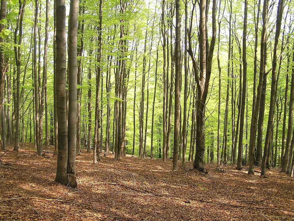 Fotografie + Čeština: Bukový les na svahu kopce Bouřný (703 m) v Lužických horách. Fotografováno během výstupu na vrchol z jižní či jihozápadní strany 6. května 2006. Autor: Jakub Friedl