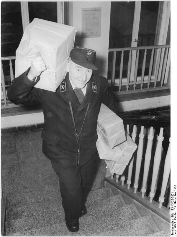 Soubor:Bundesarchiv Bild 183-43422-0001, Briefträger der Deutschen Post mit Paketen.jpg