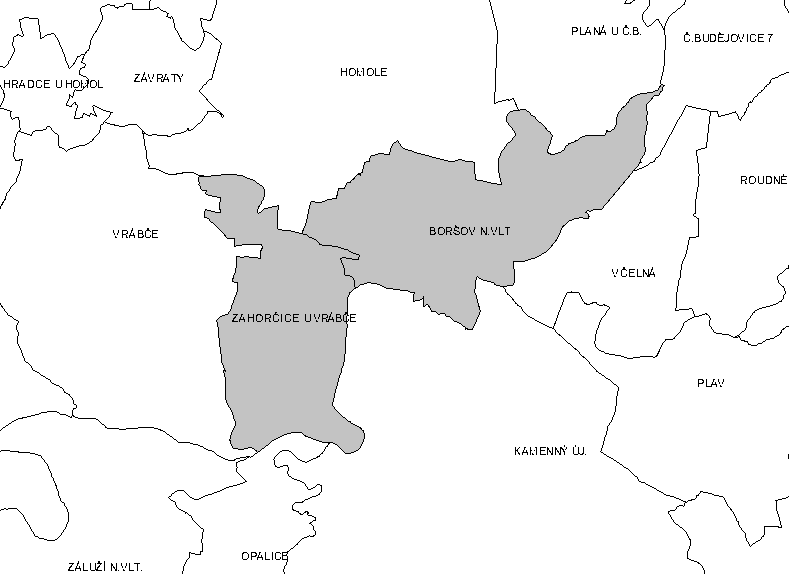 Mapa + Description: Čeština: Katastrální území Boršova nad Vltavou