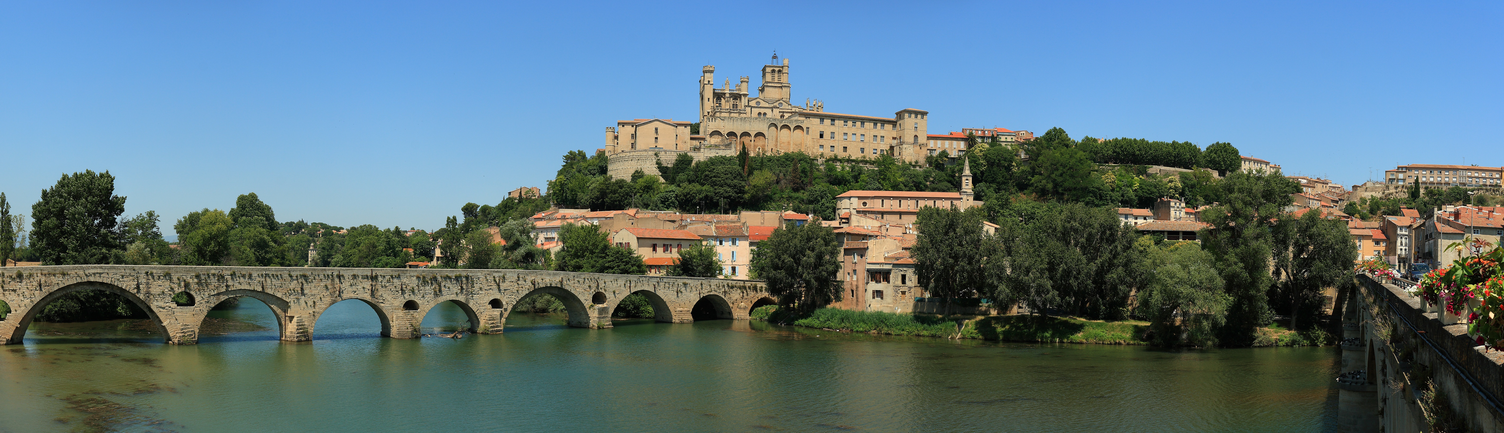 PANO Fotografie + English: View of the cathedral of Béziers and of the old bridge over the Orb. (10 July 2008)