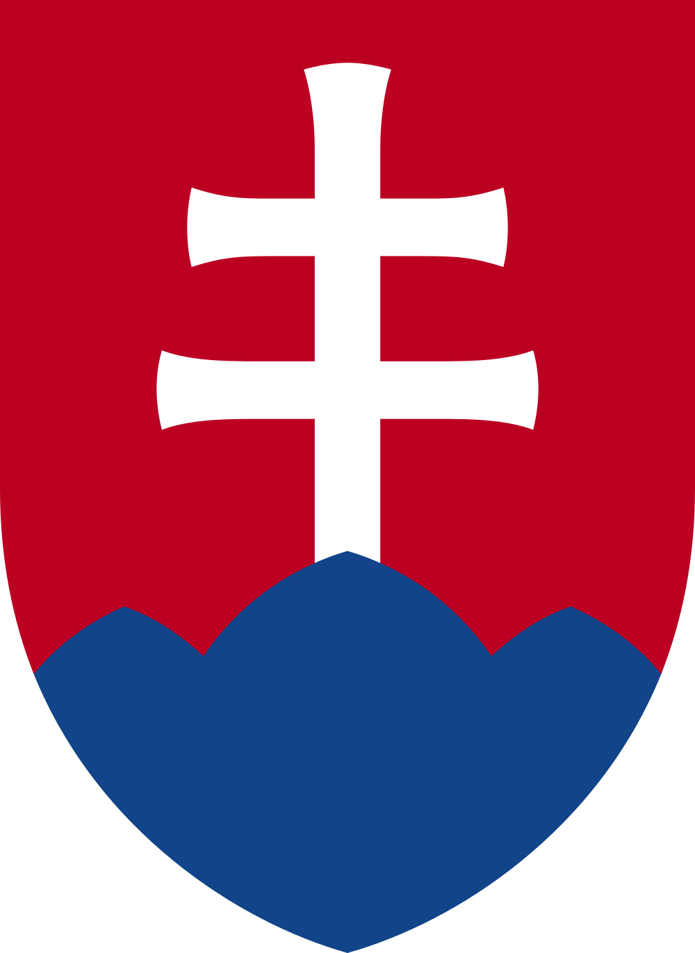 § 3. (1) Znak Slovenskej republiky je tento: na červenom (cinober tmavý), nadol zahrotenom štíte tri končisté vrchy belasé (parížska belasá), z ktorých na prostrednom vyššom vrchu je vztýčený strieborný kríž patriarchálny s dvoma ramenami, pri koncoch mierne rozšírenými. (2) Podrobnosti znaku sú zjavné z obrazov prílohy k tomuto zákonu. - Date: 4 October 2009