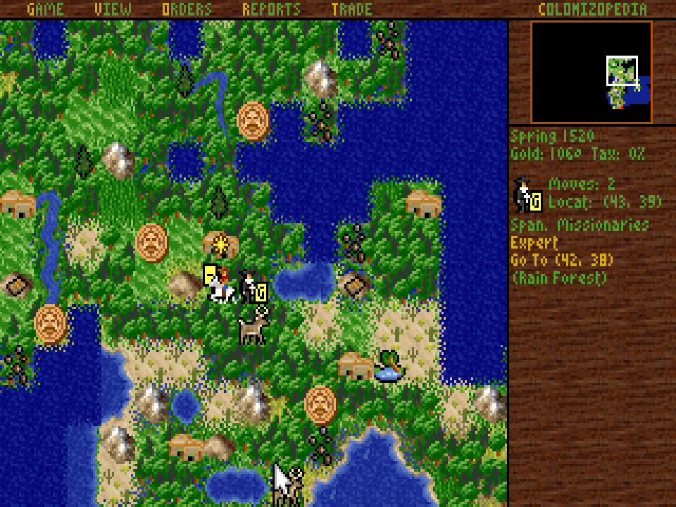 Aktuální snímek počítačové hry + Sid Meier's Colonization (GOG.com) + pochází z mého vlastního počítače.
