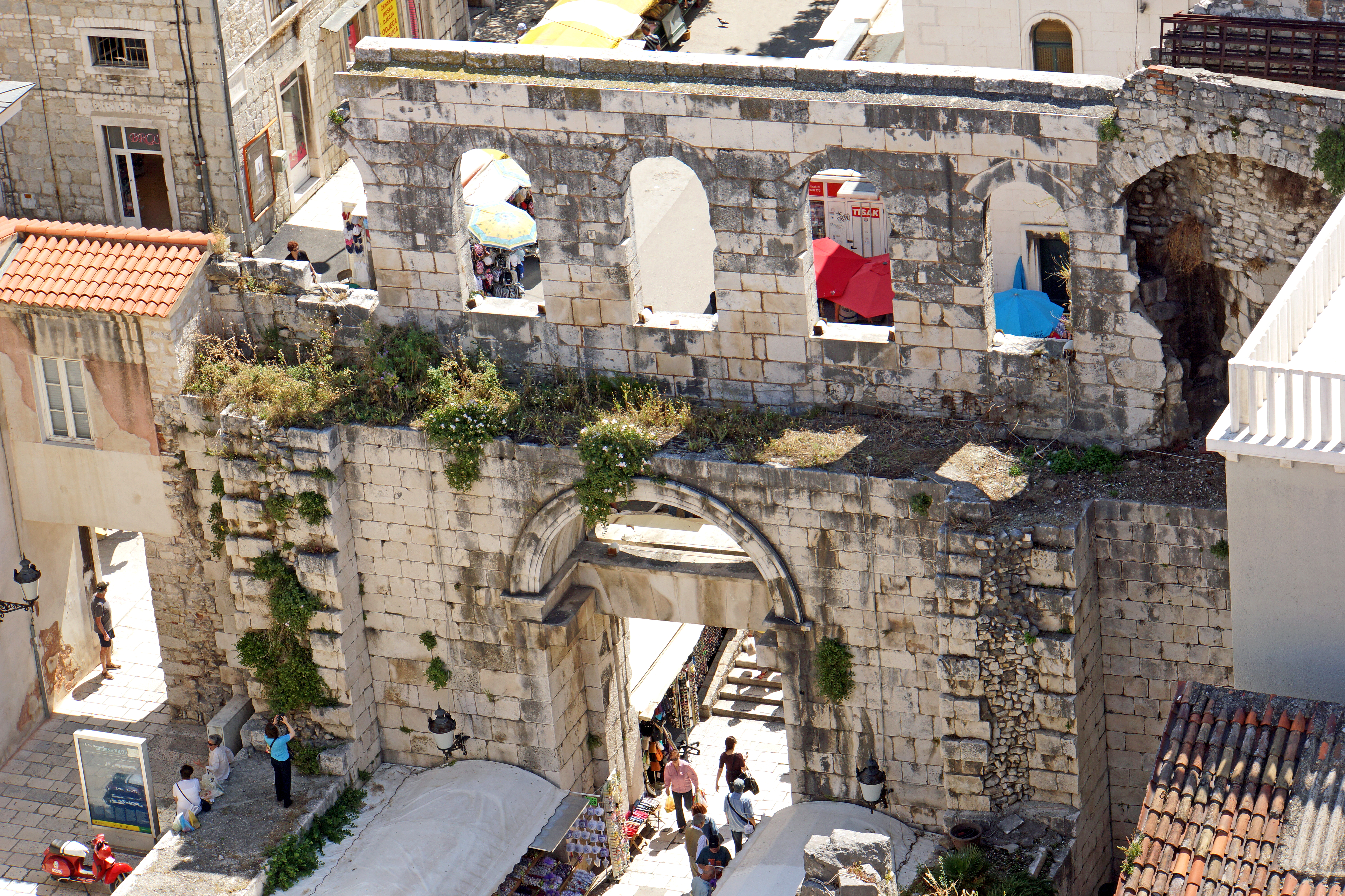 • Looking down on Silver Gate used to enter Diocletian' s Palace. It is located on the eastern wall of the palace, adjacent to main green market, Pazar and the church of St. Dominic.
