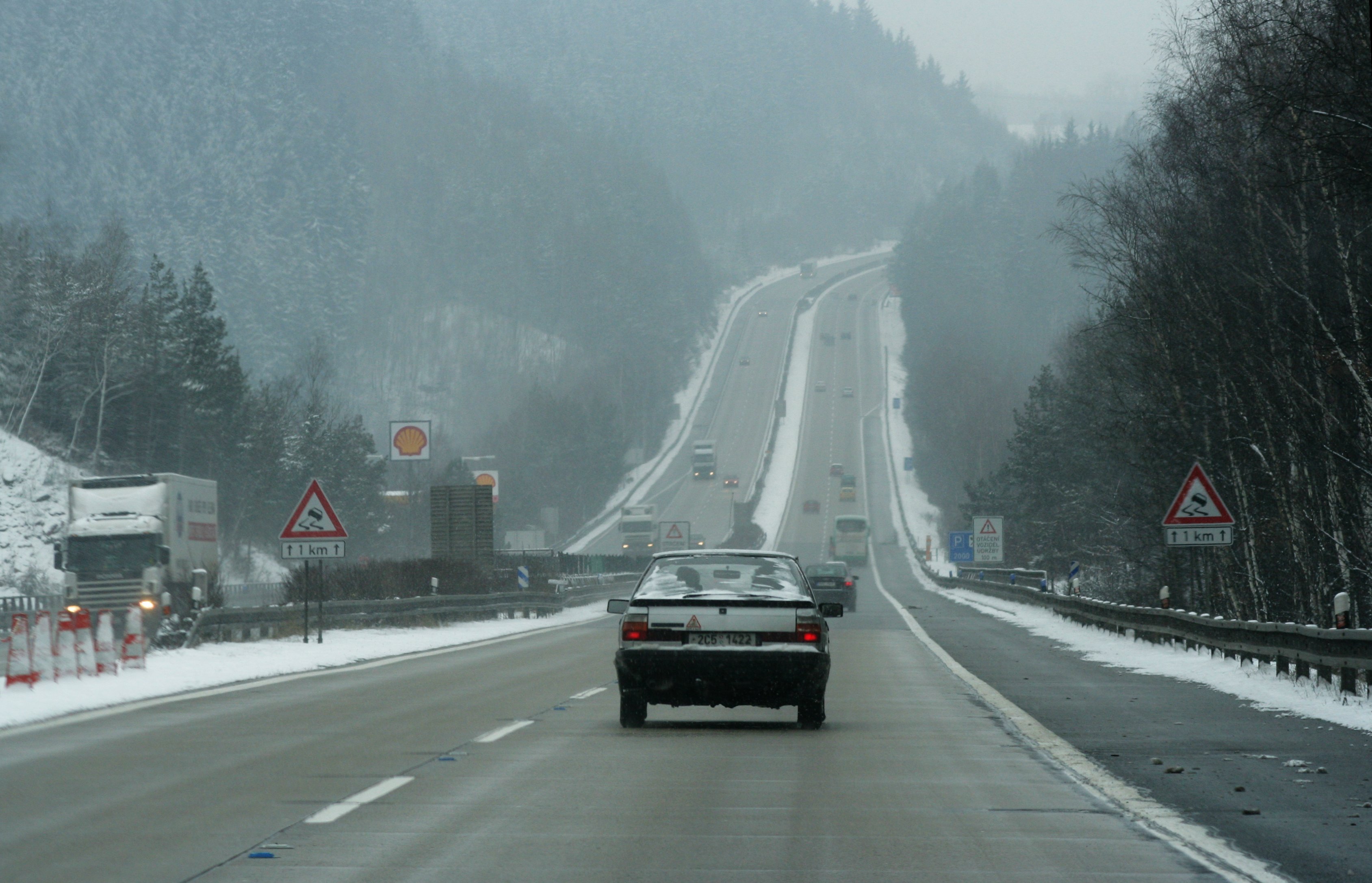 - English: Czech highway D1 at Vysočina, about 44th kilometer, heading towards Prague.
