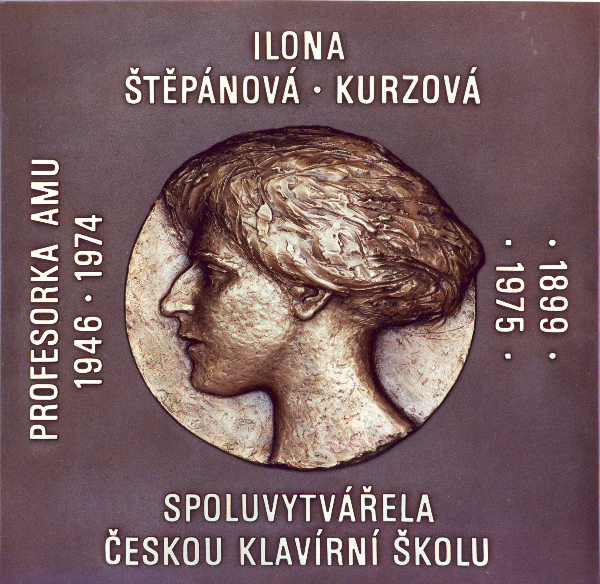 Fotografie + Čeština: Ilona Štěpánová-Kurzová, pamětní deska v budově Hudební fakulty AMU v Lichtenštejnském paláci na Malé Straně