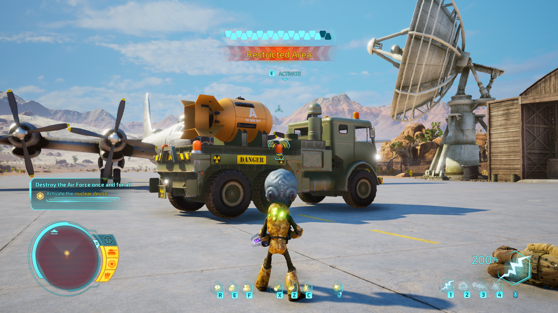 Aktuální snímek počítačové hry + Destroy All Humans! (GOG.com) + pochází z mého vlastního počítače.