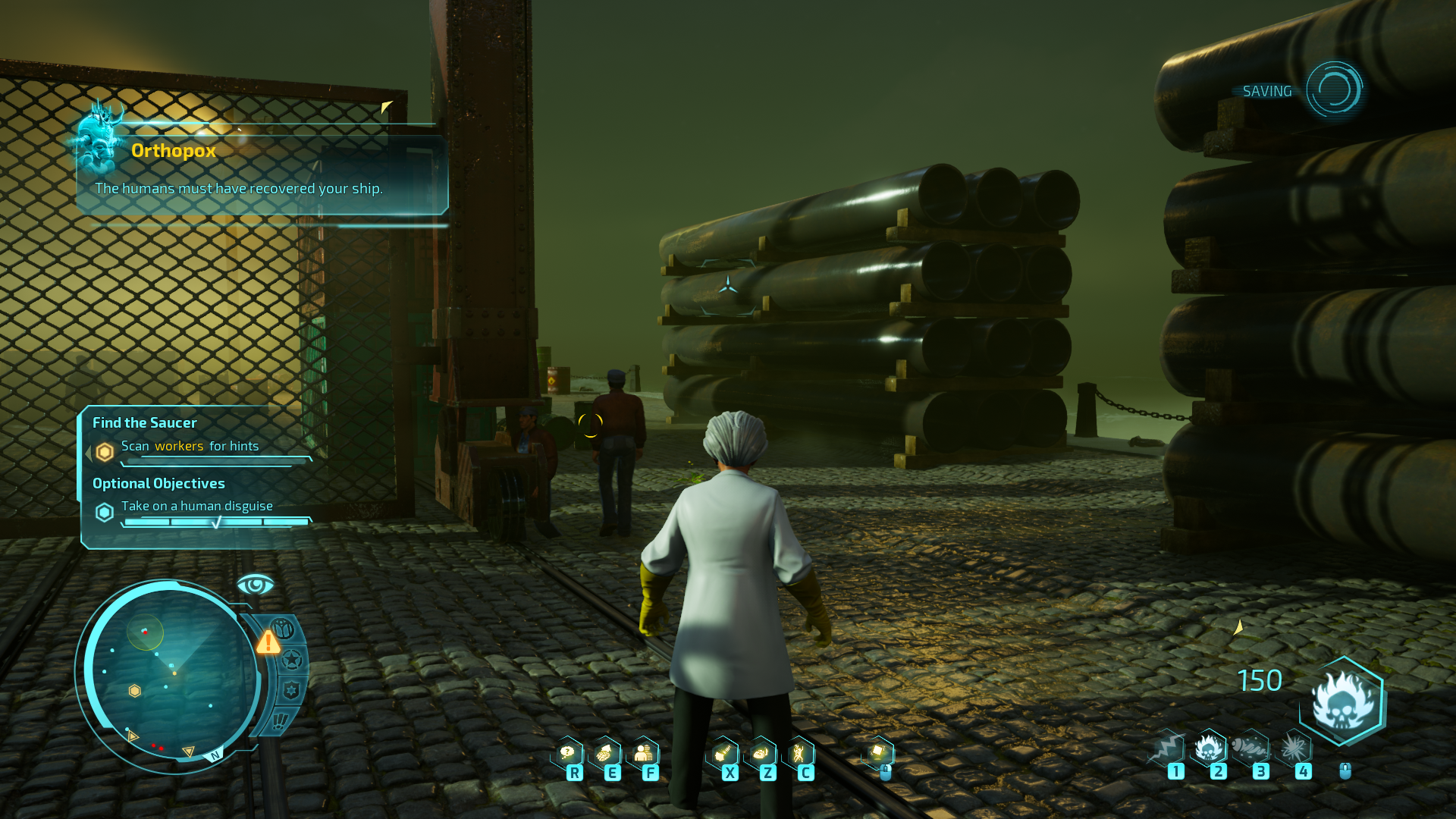 Aktuální snímek počítačové hry + Destroy All Humans! (GOG.com) + pochází z mého vlastního počítače.