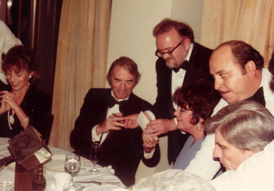 Don Thompson gets an autograph from Gregory Peck while Elizabeth Taylor looks on, at the party after the Filmex Tribute to Elixabeth Taylor, Dorothy Chandler Pavilion, November 1981. NOTE: Permission granted to copy, publish, broadcast or post any of my photos, but please credit "photo by Alan Light" if you can. Thanks.