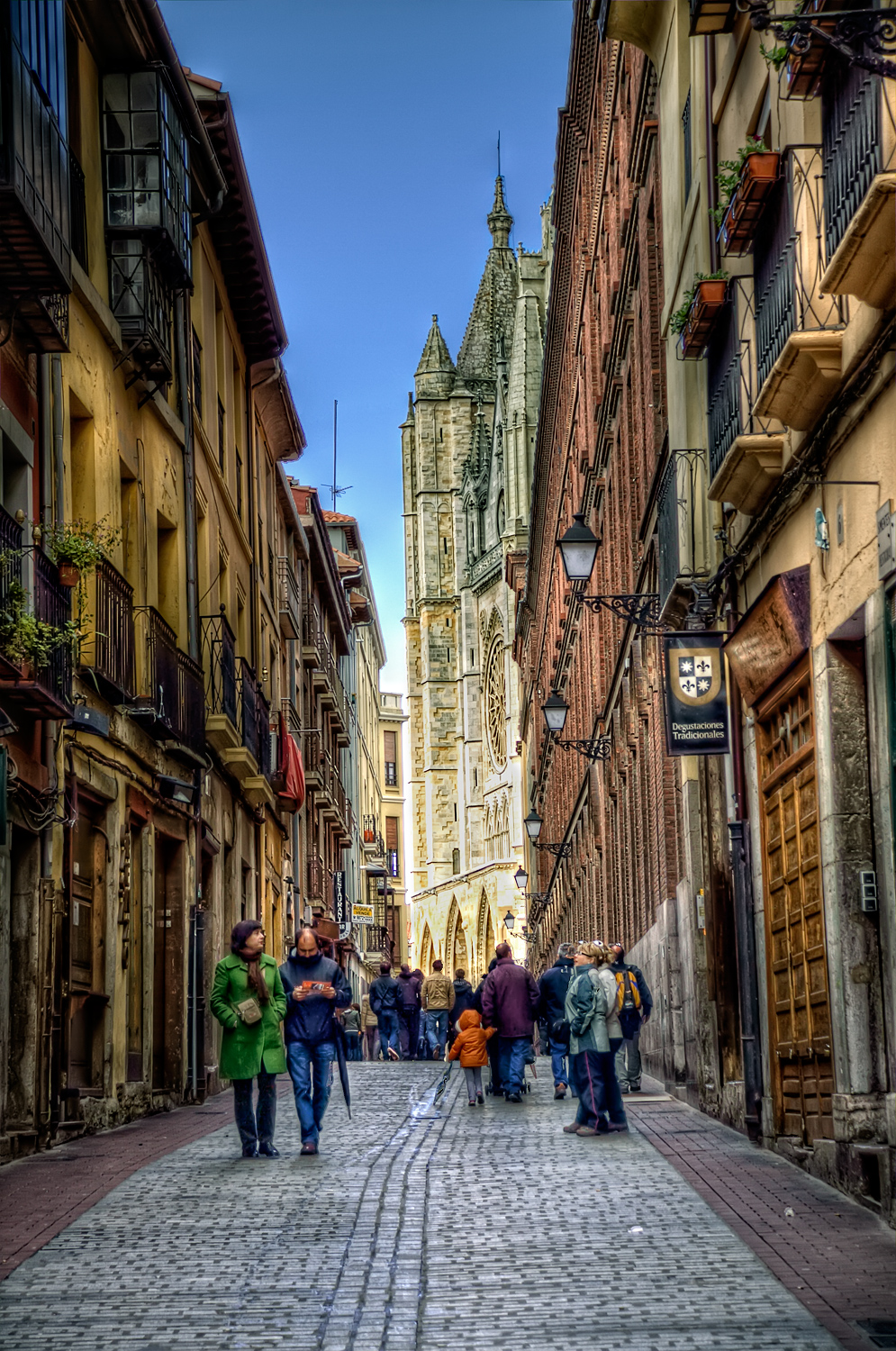 Fotografie + Hacia la Catedral de León HDR (This photo was taken on April 10, 2009 in Leon, Castille and Leon, ES, using a Canon EOS 50D). + pochází z Flickr.com , kde má status - Creative Commons Attribution-NonCommercial-ShareAlike 2.0 Generic (autor: marcp dmoz)